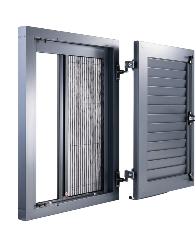 Die platzsparende Konstruktion lässt sich seitlich verschieben und fügt sich dezent in das Fenster ein. Es wird millimetergenau gefertigt, ist äusserst witterungsbeständig und überzeugt durch seine einfache, komfortable Bedienung.