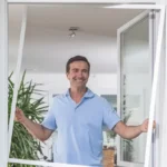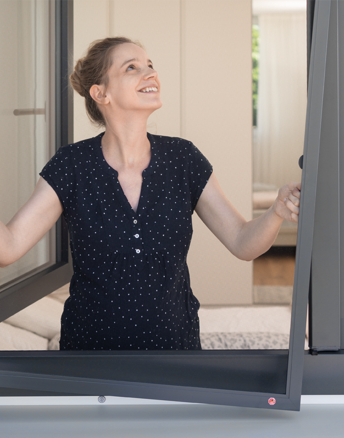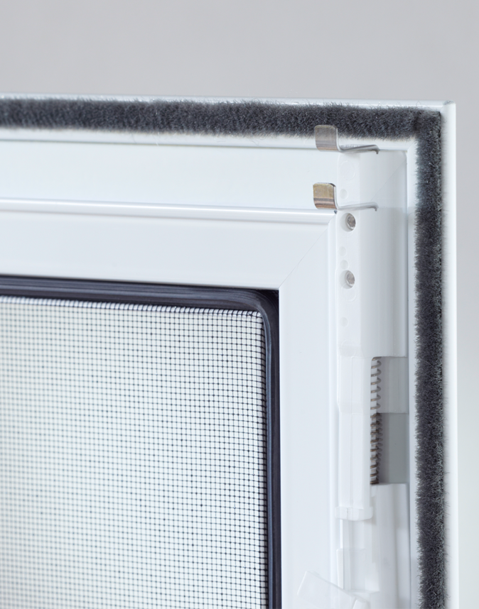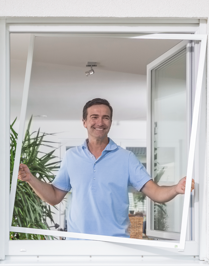 Insektenschutzgitter im Spannrahmen können einfach eingehängt und ausgehängt werden.
